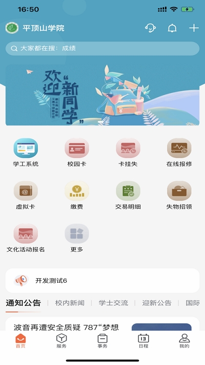 2. 在首页可以查看学校各部门的通知公告、校园活动等信息。