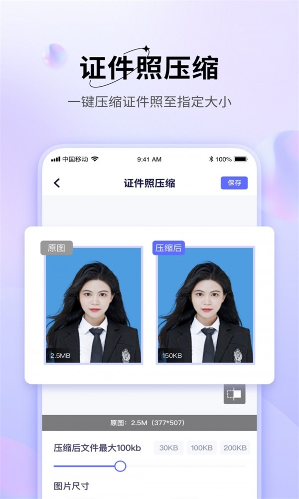 2. 制作证件照时,压图大师可以自定义图片尺寸和分辨率,满足各种证件照要求。
