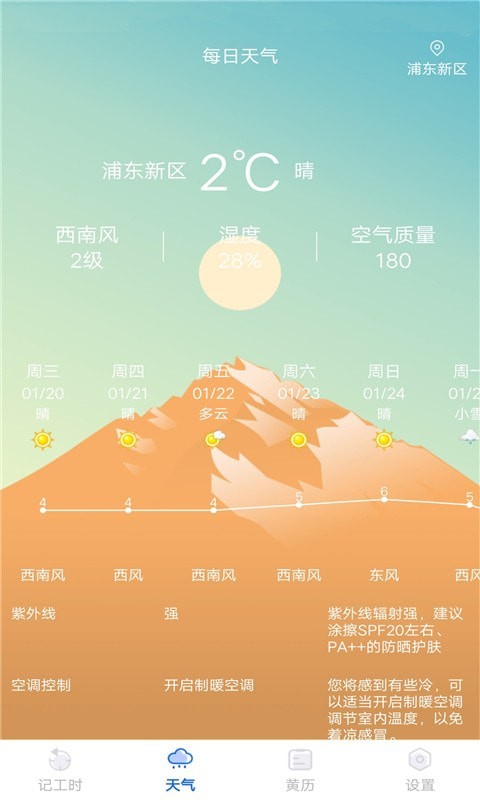 5. 全面的天气与黄历信息:提供一周内的精准天气预报及详细的黄历信息,助力用户更好地安排工作与生活。