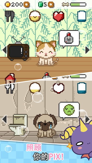 1. 宠物养成:玩家需要定期喂食、清洁、玩耍并照顾pix,确保它们的饥饿值、清洁度和幸福感保持在最佳状态。