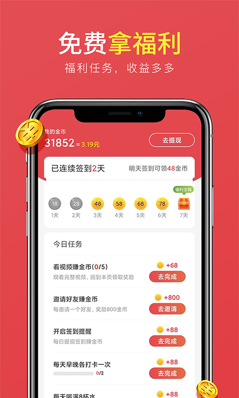 1. 奖励机制完善,用户通过完成运动任务可以获得红包、金币等奖励,奖励可以直接提现或兑换精美礼品。
