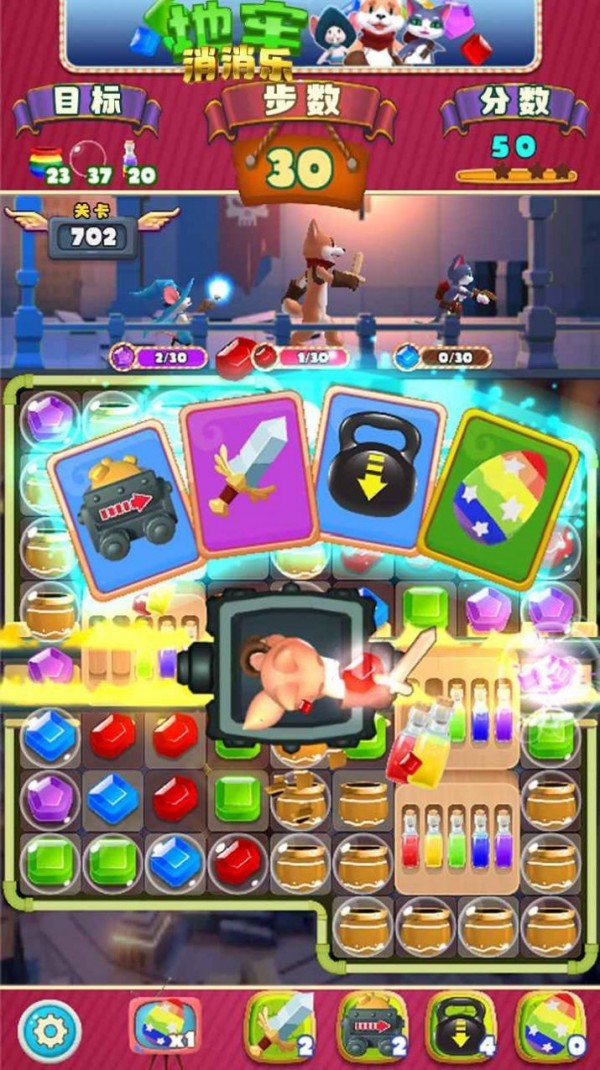 1. 多样化的消除玩法:游戏不仅包含经典的三消模式,还引入了多种特殊宝石和道具,如火箭、炸弹等,为玩家带来更加丰富的消除体验。