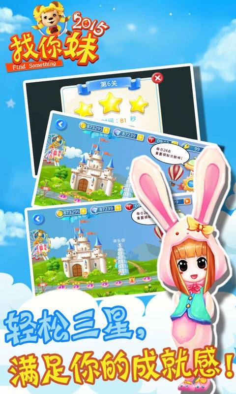 找你妹2014是一款深受玩家喜爱的安卓休闲游戏,以其独特的找物品玩法和融合rpg元素的创新设计而备受瞩目。游戏以“姐姐为爱寻找妹妹”的感人故事为主线,玩家将在轻松诙谐的氛围中,通过一系列精心设计的关卡,帮助主角在奇幻世界中寻找失散的妹妹。游戏画面清新可爱,音效轻松愉快,为玩家带来一场充满挑战与乐趣的冒险之旅。