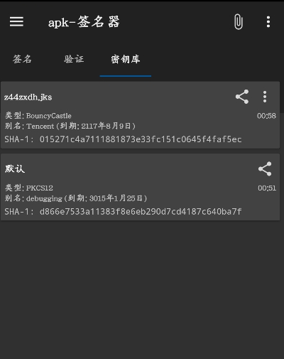 1. 数字签名:核心功能是生成和验证apk文件的数字签名。