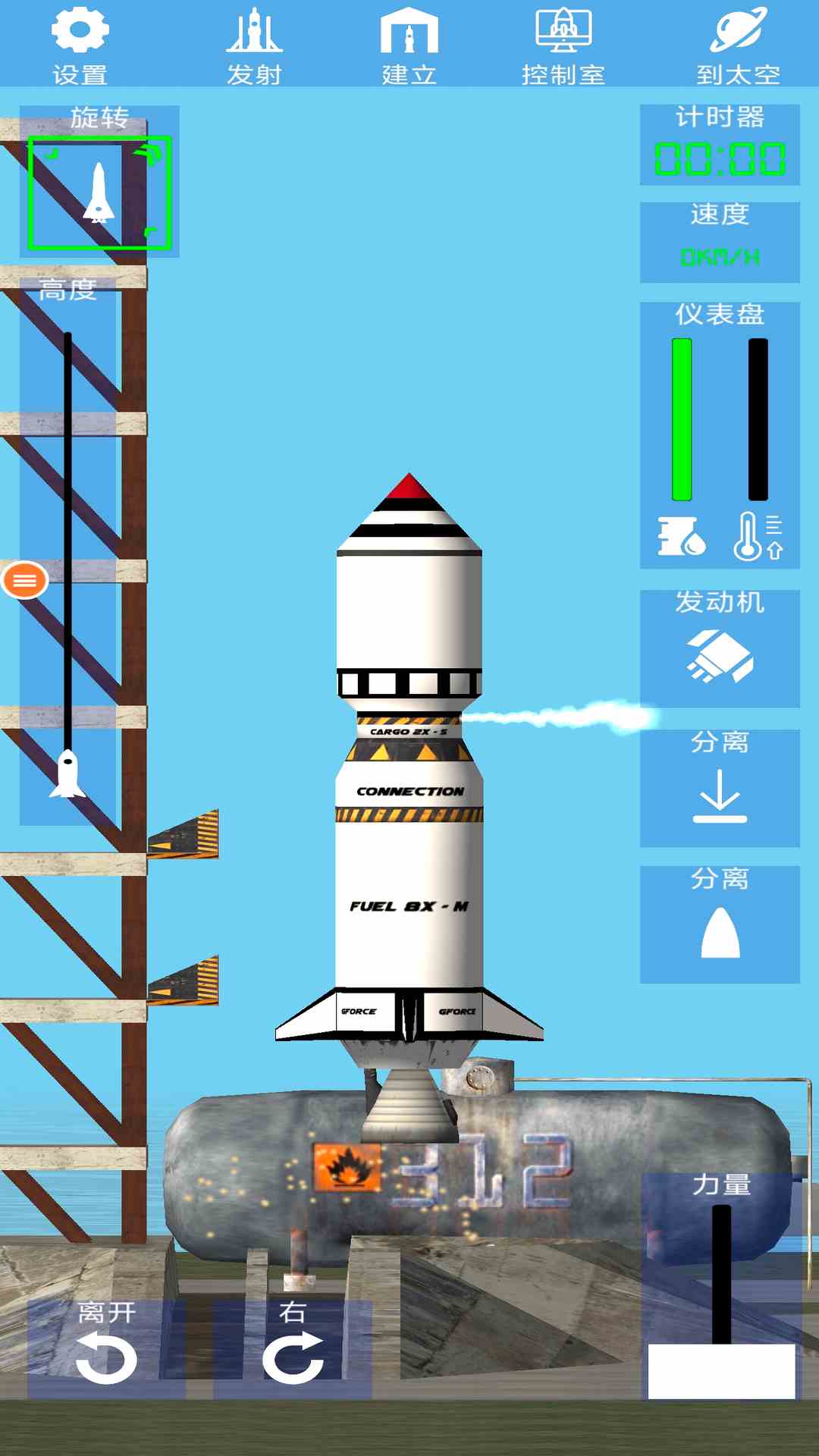 1. 真实物理引擎:模拟大气层内阻力、真空环境推力衰减、重力转向等细节,火箭结构不合理会导致飞行中解体。