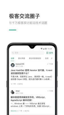 3. 圈子讨论:在“圈子”中提供了面试考题、系统设计、算法与数据结构等多个社区供用户们在线讨论。
