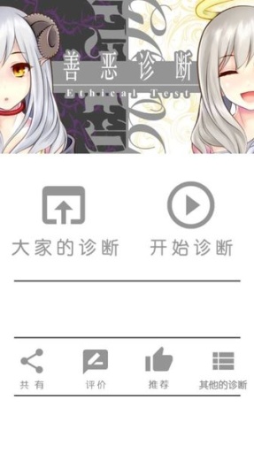 善恶诊断汉化版是一款极具挑战性的模拟问答游戏,它深刻探讨了人性的善与恶,让玩家在回答一系列精心设计的问题时,反思自己的内心世界。游戏以日式休闲风格为基调,拥有精美的画面和磅礴有力的背景音乐,为玩家营造了一个既轻松又引人深思的游戏氛围。在游戏中,玩家需要诚实地回答各种问题,系统会根据玩家的回答来判断其内心的善恶倾向,从而给出相应的诊断结果。这款游戏不仅适合用来自我测试,也非常适合与朋友一起分享和讨论,共同探索人性的复杂多面。