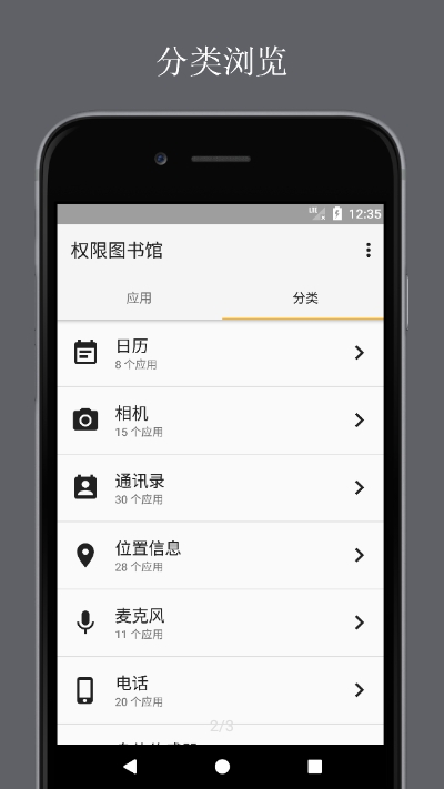 1. 智能识别:权限图书馆能够智能识别应用程序所申请的权限类型,并对其进行分类展示,方便用户快速了解。