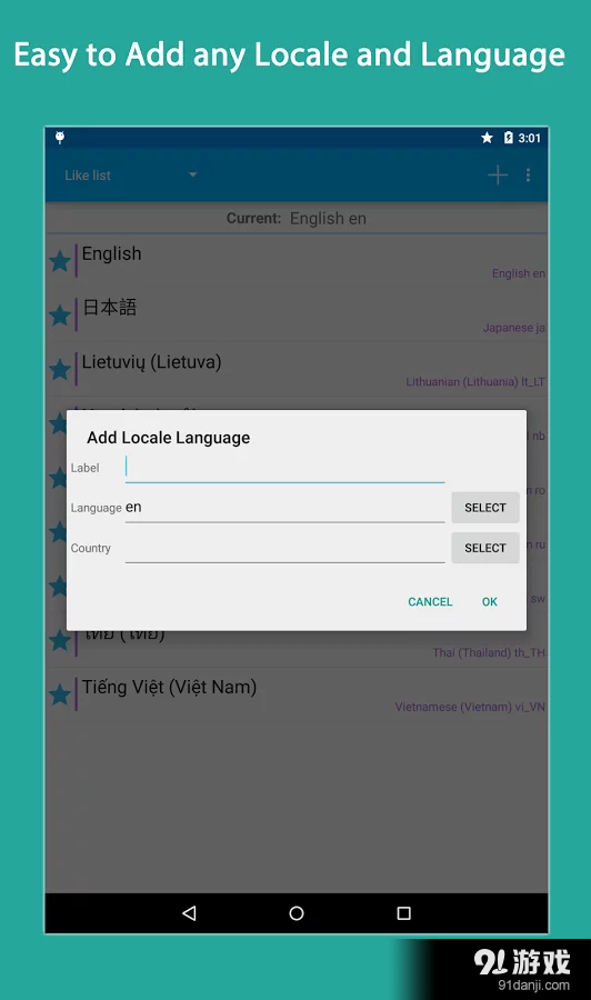 morelanguage是一款功能强大、操作简便的安卓语言切换工具。它提供了丰富的语言和地区选项,用户可以根据个人需求轻松选择和切换。软件界面简洁明了,操作流畅,占用内存小,不会影响设备的整体性能。同时,它还支持添加自定义语言和地区,满足用户的个性化需求。无论是在个人使用还是跨国交流中,morelanguage都能为用户提供极大的便利。总之,这是一款值得推荐的安卓语言切换工具。