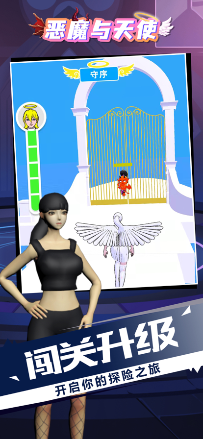恶魔和天使是一款极具创意的休闲跑酷游戏,玩家将在游戏中扮演角色进行跑酷闯关,通过选择不同的门来决定成为天使还是恶魔,每个身份都拥有独特的能力和外观。游戏画面细腻,操作简单易上手,同时提供了多种服装和角色供玩家选择和切换,增加了游戏的可玩性和趣味性。在跑酷过程中,玩家需要收集武器和道具,提升自己的操作技巧,以应对不断增加的关卡难度。