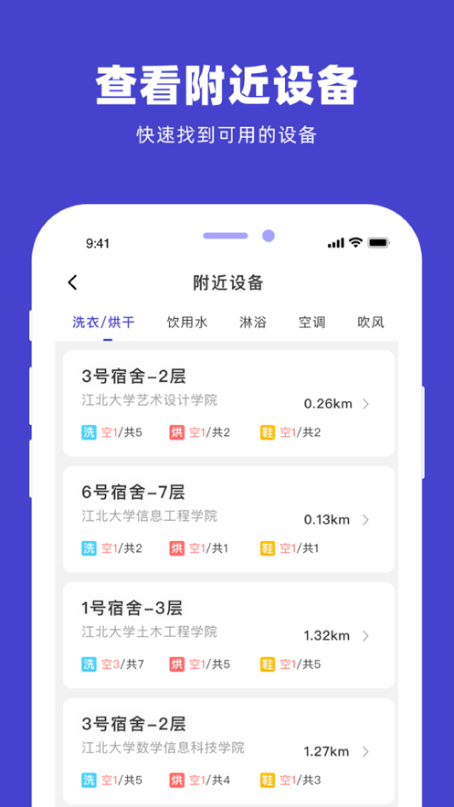 软件支持定位功能,用户可轻松找到附近设备,并根据地图、最近使用或附近洗衣房快速选择洗衣地点。