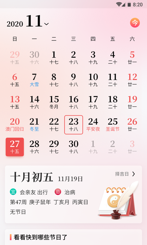 黄历app专题合集汇聚了多款实用的黄历软件,这些app融合了传统黄历的文化底蕴与现代万年历的便捷功能。用户不仅可以轻松查询农历、公历日期,还能获取天气动态、黄历宜忌、节日节气等信息,为日常生活提供便利。部分app还提供运势查询、日程提醒等特色功能,满足用户的多