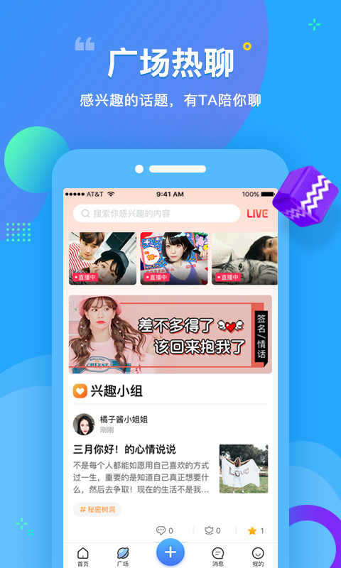 5. 发布动态:点击右上角的发布按钮,可以发布自己的动态、分享心情和照片。