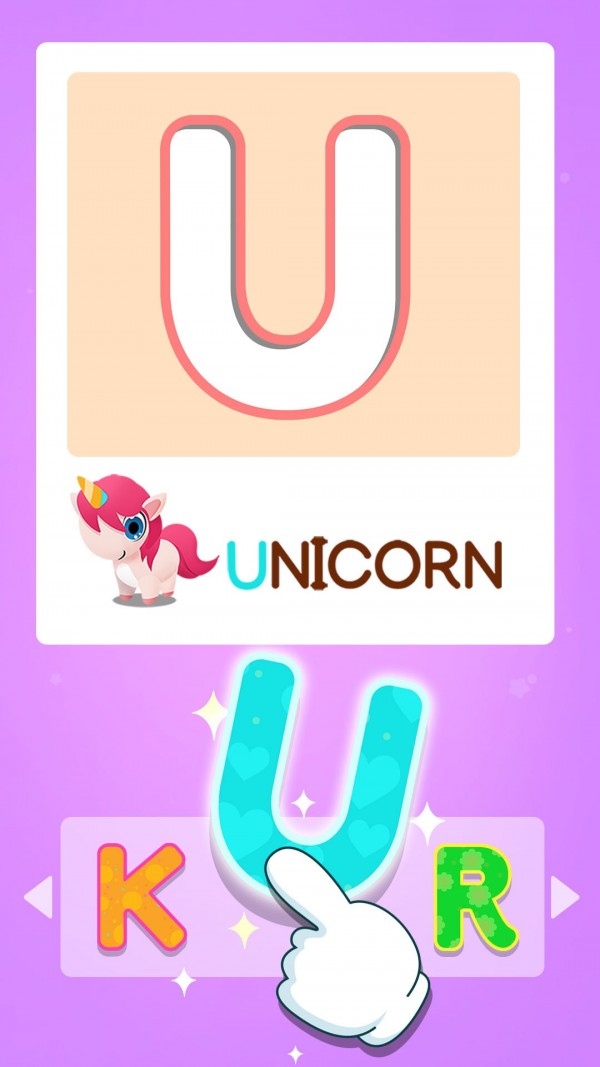 1. 通过播放字母读音,让孩子认识字母发音、了解字母具体形状。