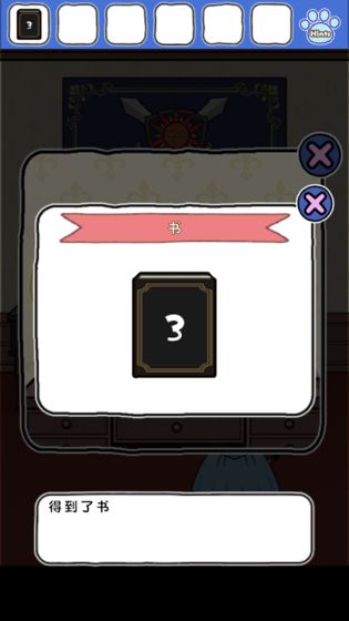2. 向右到达有书柜的房间,把3号书放在下层空缺处,开启上方柜子。
