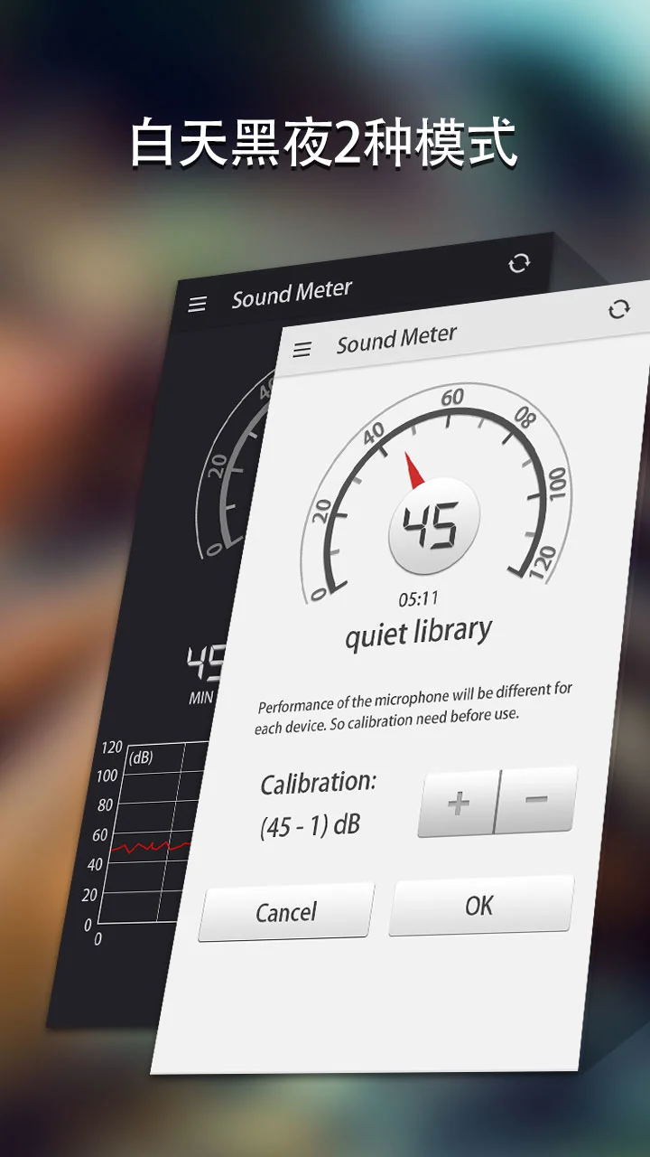 1. 操作便捷性:界面设计简洁直观,主界面仅保留核心功能按钮(开始/停止测量、重启、校准),新手用户无需复杂学习即可快速上手;支持桌面小部件功能,无需打开APP即可快速查看当前分贝值。