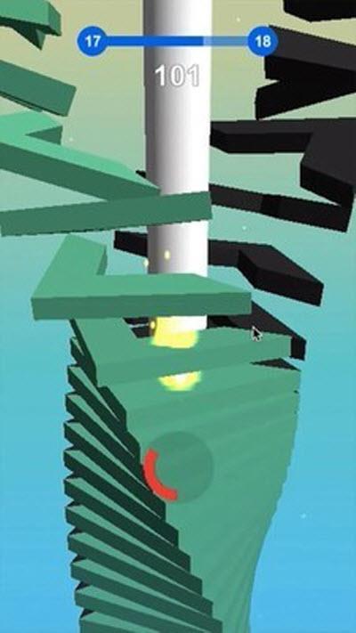 2. 躲避障碍物:游戏中有各种形状的障碍物,如螺旋堆叠的挡板、不能交叉的黑色部分等,玩家需灵活操作小球躲避。