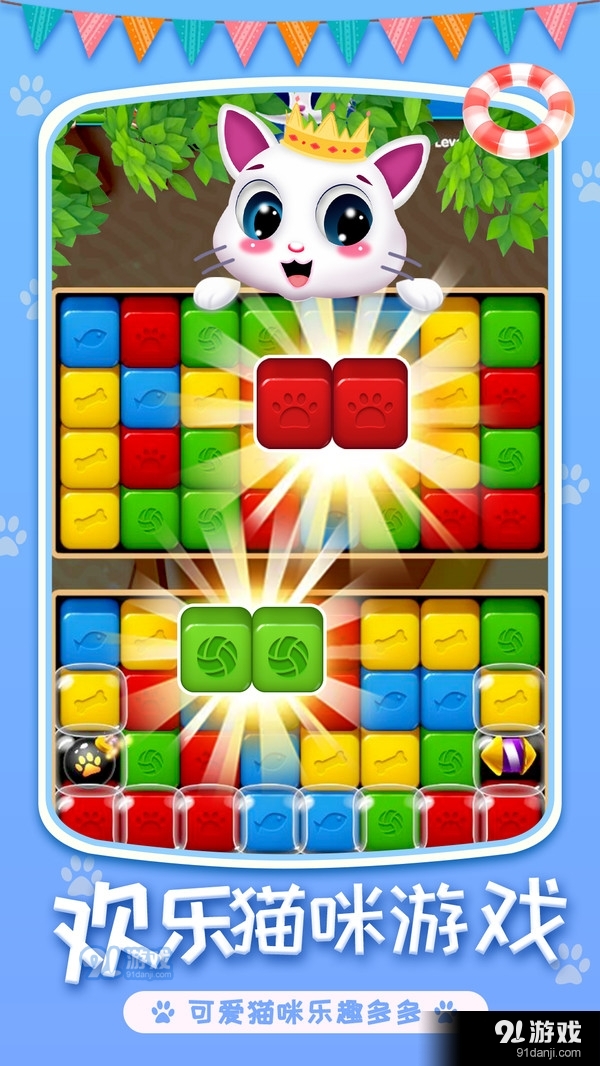 1. q版萌系画风:游戏采用q版萌系画风,喵星人和消除方块都设计得十分可爱,色彩鲜艳,为玩家带来全新的视觉体验。