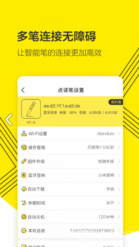 3. 设置wifi:绑定成功后,自动跳转到点读笔设置界面,点击wifi设置,选择要连接的wifi名称并输入密码。