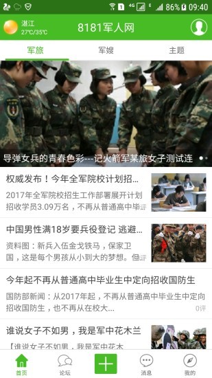 2. 浏览资讯:在首页或资讯板块,用户可以浏览最新的军旅资讯,了解军队动态和军人生活。