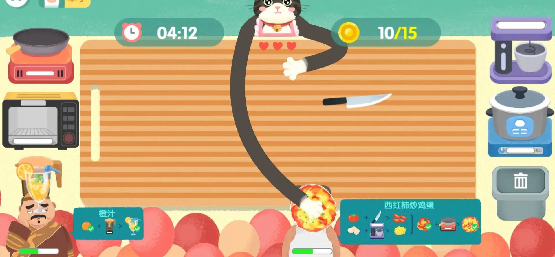 1. 主角:一只热爱烹饪的可爱猫咪,拥有两只可以独立操控的猫爪。