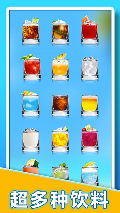3. 饮料选择:游戏提供了多种饮料供玩家选择,包括果汁、汽水、咖啡等,每种饮料都有逼真的颜色和动态效果。