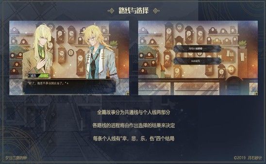 夕日三刻的钟是一款由月石砂计创作的乙女向剧情游戏,发布于网易旗下的易次元平台。在这款游戏中,玩家将扮演一名小警员,意外卷入一场阴谋之中。故事围绕着小镇上一家看似不起眼的破旧钟表店展开,其背后隐藏着诸多秘密。警局、盗贼团、收藏家三方势力相互纠缠,使得整个故事充满悬念与张力。游戏中共有九位可攻略的角色,包括一位隐藏角色,每位角色都有四个不同的结局,玩家的选择将直接影响剧情的走向和角色的命运。