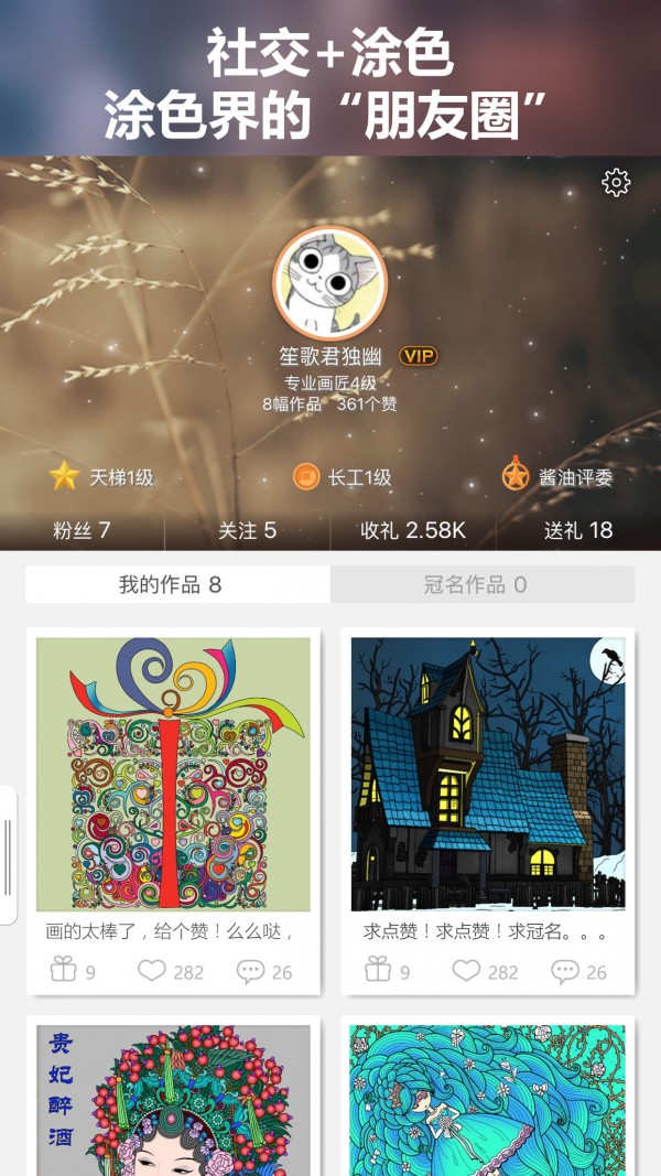 3. 强大社交功能:内置分享、关注、点赞、评论、私信等社交功能,方便用户交流涂色心得,共同提升绘画技巧。