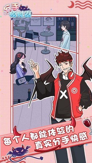 1. 核心玩法:游戏分为“套路大师”与“分手模拟”双模式。前者需通过分析场景线索回答3个问题,答错需重开;后者需收集道具并合理使用,例如用香蕉皮制造服务员摔倒的意外,或调整时钟让对方错过约会。部分关卡需先通关“套路大师”第三关解锁。