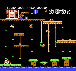 2代的名字叫《Donkey Kong Jr.》,实际上是小金刚救老爸的游戏,小金刚比较呆萌可爱。这回换做大金刚被抓,马里奥大叔扔东西搞乱,有放鳄鱼咬,有摇闪电。值得注意的是,这款游戏是马里奥任天堂系列唯一的一次反派出场。