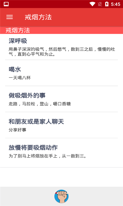 3. 丰富的戒烟知识库:软件内置了大量的戒烟知识和小贴士,帮助用户了解吸烟的危害、戒烟的好处以及戒烟过程中的注意事项。