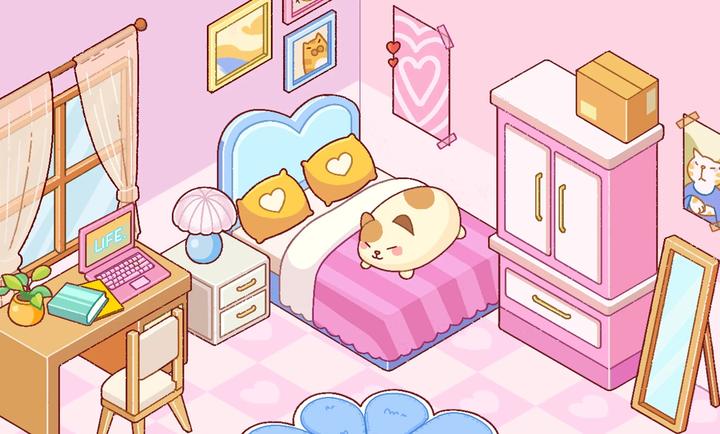 1. 贴纸自由装饰:玩家可拖拽家具道具至房间任意位置,无需对齐网格或遵循规则。从复古台灯到星空窗帘,每张贴纸均带有独特纹理与光影效果,支持自由叠加与旋转,例如让云朵贴纸“飘”在天花板,或让花朵贴纸“爬”满墙壁。