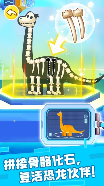 3. 三号星球:复活使命:通过探测仪定位火山裂缝中的化石,用铲子挖掘后拼接恐龙骨架,启动复活机器唤醒史前生物,并建造恐龙乐园供其栖息。
