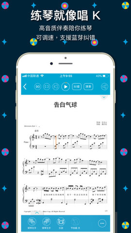 2. 功能齐全:集伴奏播放、乐谱查看、调速、节拍器等功能于一体,满足用户全方位的学习需求。