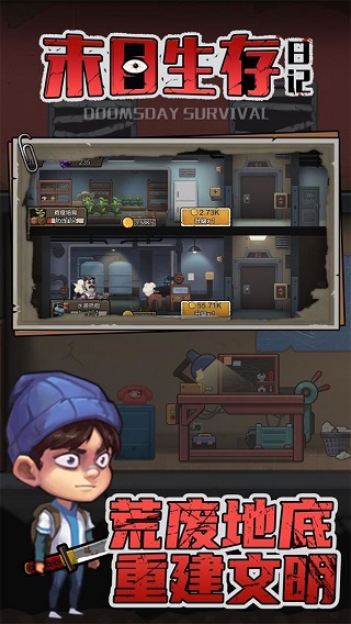 1. 资源收集与生产链构建:玩家需在废墟中搜寻食物、水源、武器及稀有材料,通过升级粮食培育、水源质检等设施提升资源产出效率。例如,粮食培育设施每秒可产出24金币,水源质检设施每秒产出620金币,通过连续升级可加速资源积累。同时,利用分解变异体残骸获取生物燃料,驱动温差发电站维持基地运转。