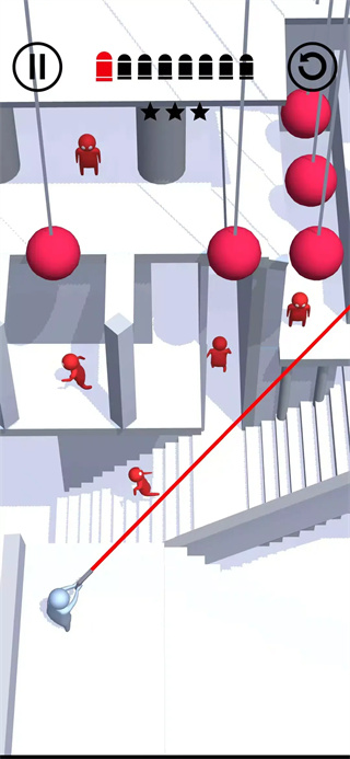 1. 物理引擎优化:采用Havok物理引擎,子弹反弹轨迹符合真实力学规律,玩家可通过计算抛物线实现精准击杀。例如在“镜像迷宫”关卡中,需利用镜面反射原理完成多重反弹。