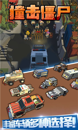 撞击僵尸是一款像素风格的末日生存题材的冒险游戏,玩家可以在地图场景中驾驶车辆自由的行驶,可以收集更多的生存资源,饮用水和食物还有衣服以及各种材料等,你可以改装你的车辆,使它足够坚固厚实,还可以操控车辆以及各种武器道具来消灭所有的僵尸,消灭的僵尸越多你的分数越高,丰富的改装车任你解锁,逃离无人城。
