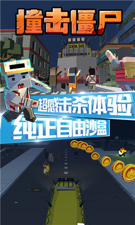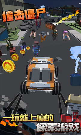 纯正自由像素沙盒风格的赛车生存类手游《撞击僵尸》火爆来袭,超魔性上瘾的玩法,驾驶自己的汽车,将射击僵尸和赛车跑酷完美的结合,躲避僵尸追击的同时收集金币,感兴趣的玩家快来下载吧!