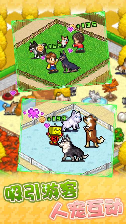 2018年贺岁新作,沿袭了开罗游戏像素模拟经营风格,拥有开罗经营类放置玩法。游戏中有来自世界各地的名贵犬种,满足你的“云养汪”的梦想,让你成为一个不铲屎的幸福铲屎官。通过认真经营,科学规划,系统的布局,打造出全球超一流的汪星人主题游乐园吧!