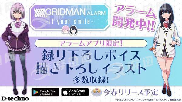 D-techno 宣布与定于今年春季在iOS / Android 平台推出《SSSS.GRIDMAN》的闹钟应用程式《SSSS.GRIDMAN ALARM -If your smile-》,将会收录作品两位女主角六花与茜的大量全新语音与插图!