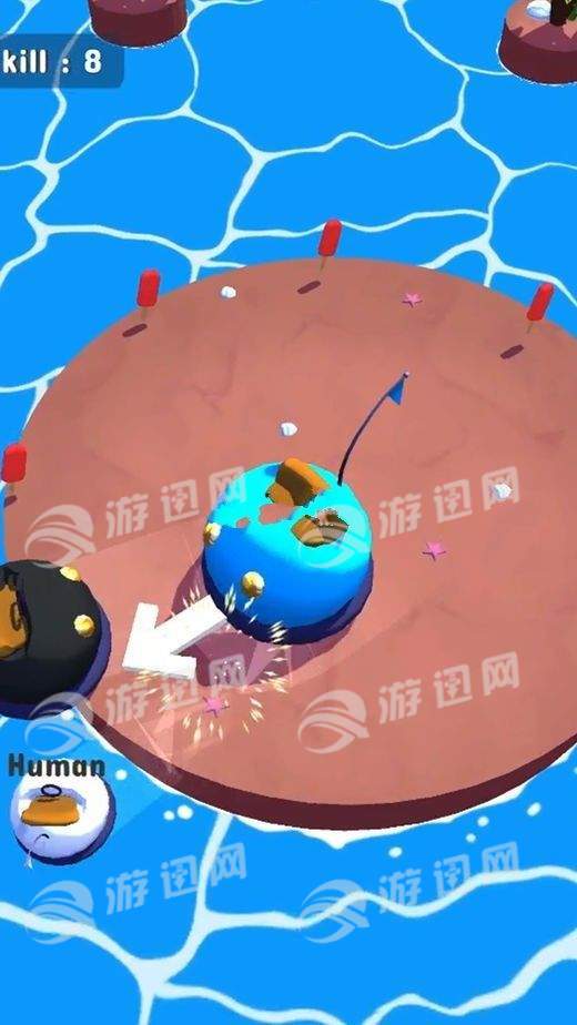 玩家需要灵活的躲避周围椅子的攻击,保证自己尽量不要靠近海岛外围,尽量往中间靠,这样才不会一下被敌人攻推进海里,当然在获得能量球的时候也需要注意,防止其他玩家的偷袭,当你获得能量球的时候就会变大,尽快的将其他玩家推进海里。