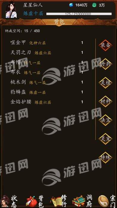 玩家进入游戏就能开始修炼,可以不断提升角色的修为等级;