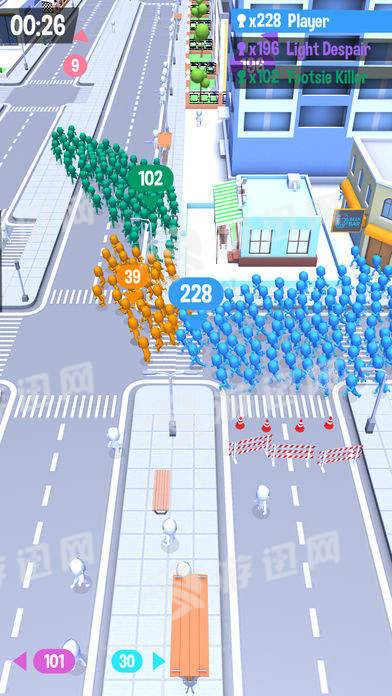 玩家可以在这里控制你的核心卡通军团领袖,不断吸纳城市之中的粉丝小人,同时扩张你的规模!