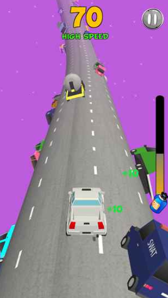 1、在这无尽的旅途中在躲避其他车辆的同时冲过空隙,想快速切换车道以达到惊人的速度!