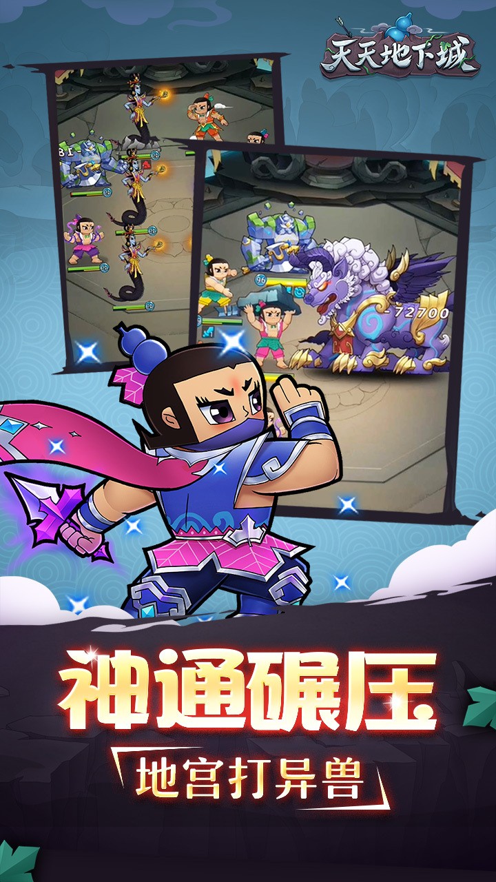 七位葫芦娃各有独特神通技能,策略合理搭配各类妖精,组合超强阵容自动闯天关、扫荡日常、轻松打败地宫山海异兽。