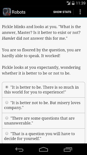 机器人的抉择是一款文字冒险解谜类手游,喜欢文字叙事的玩家会觉得有趣,可是不喜欢的玩家会觉得枯燥无味加上本作是全英文的所以难度可想而知了。