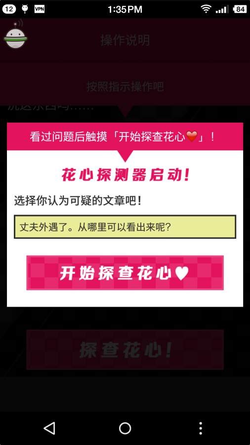 不会是花心吧是一款文字剧情类手游,游戏中需要玩家根据对方的对答来判断对象是否出轨,妹子们可以从游戏中学会一些辨别技巧,当然不要被游戏带的太过神经质咯。