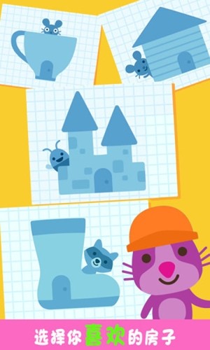 3、几十个有特色的房子,每个房子都是一个小动物的家,随意选择一个想建造的,开始游戏。