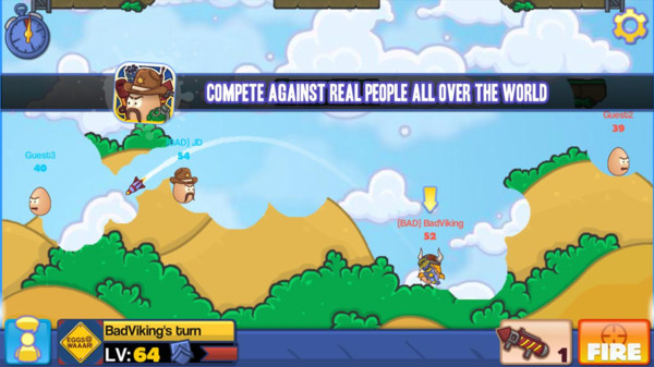 这是是一款多人火炮式的游戏,玩法有点像百战天虫,具有不同的战斗玩法和不同的射击体验,万种装备免费搭配,将你的对手炸成碎片,向他们展示,什么才是真正的坏蛋!