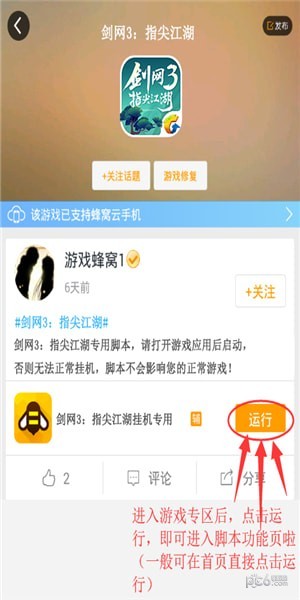 4、点击游戏图标进入剑网3指尖江湖之后,点击右侧叉叉助手悬浮窗,自行选择,点击运行